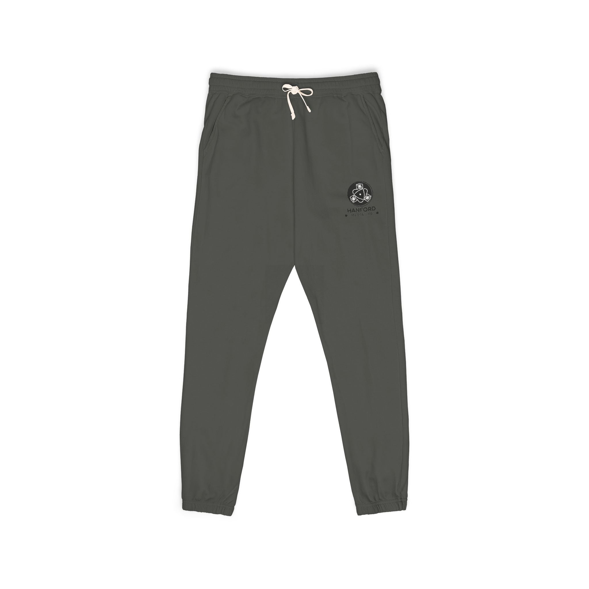 - Relaxed fit with side seams, elastic waistband, drawcord, and cuffed ankles